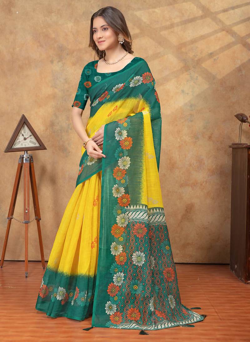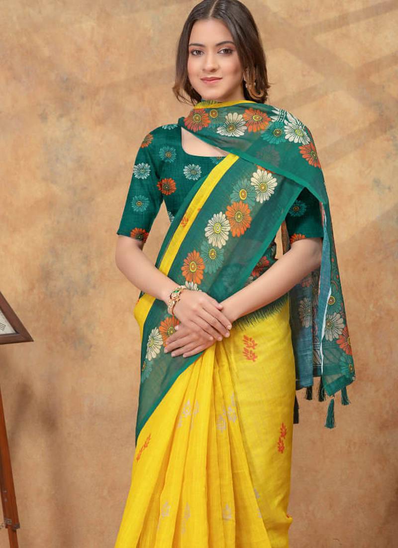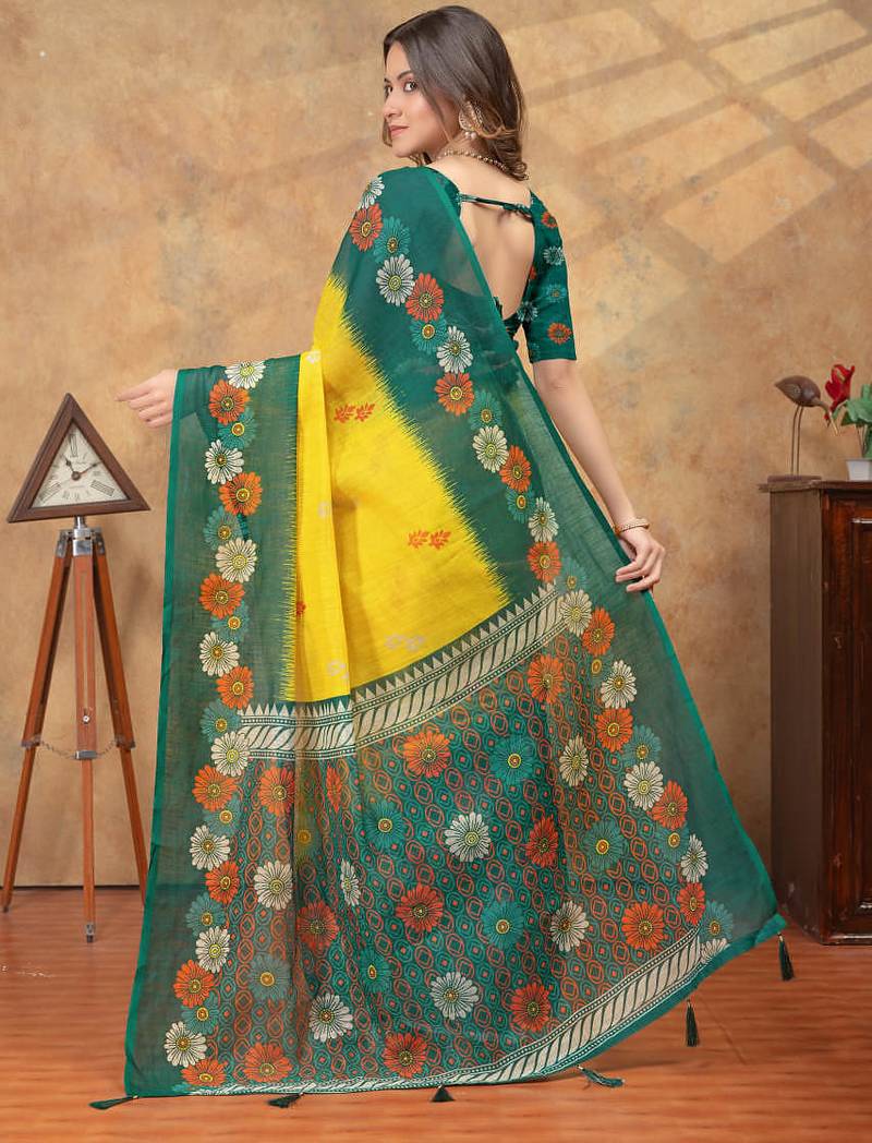 | Product Name | Yellow Printed Art Silk Designer Pallu Saree | |