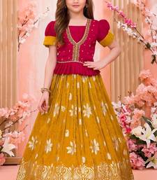 | Product Name | Girls Rani Pink & Mustard Silk Peplum Lehenga Choli Set With Gold Zari Work | |