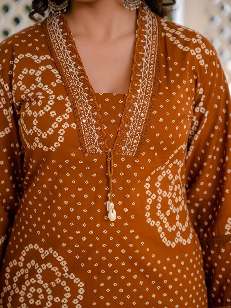 | Product Name | Women Bandhej Printed Kurti Pant Dupatta Set For Women | Ethnic Cotton Kurta Set | Festive & Daily Wear | |