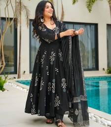 Black digital printed mal cotton anarkali set with dupatta stitched