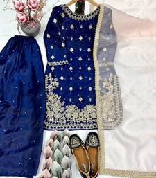 Blue georgette embroidered readymade suits stitched