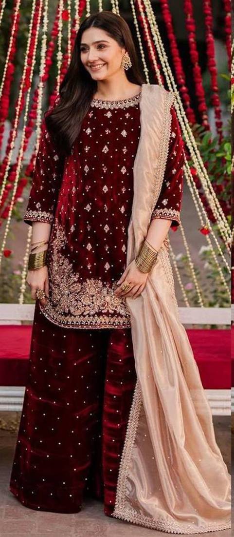 | • | Dupatta | : | Color- Maroon / Fabric- Organza |