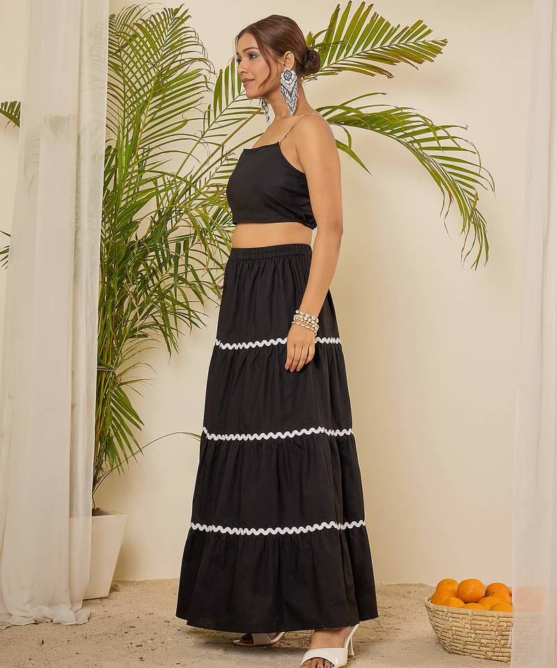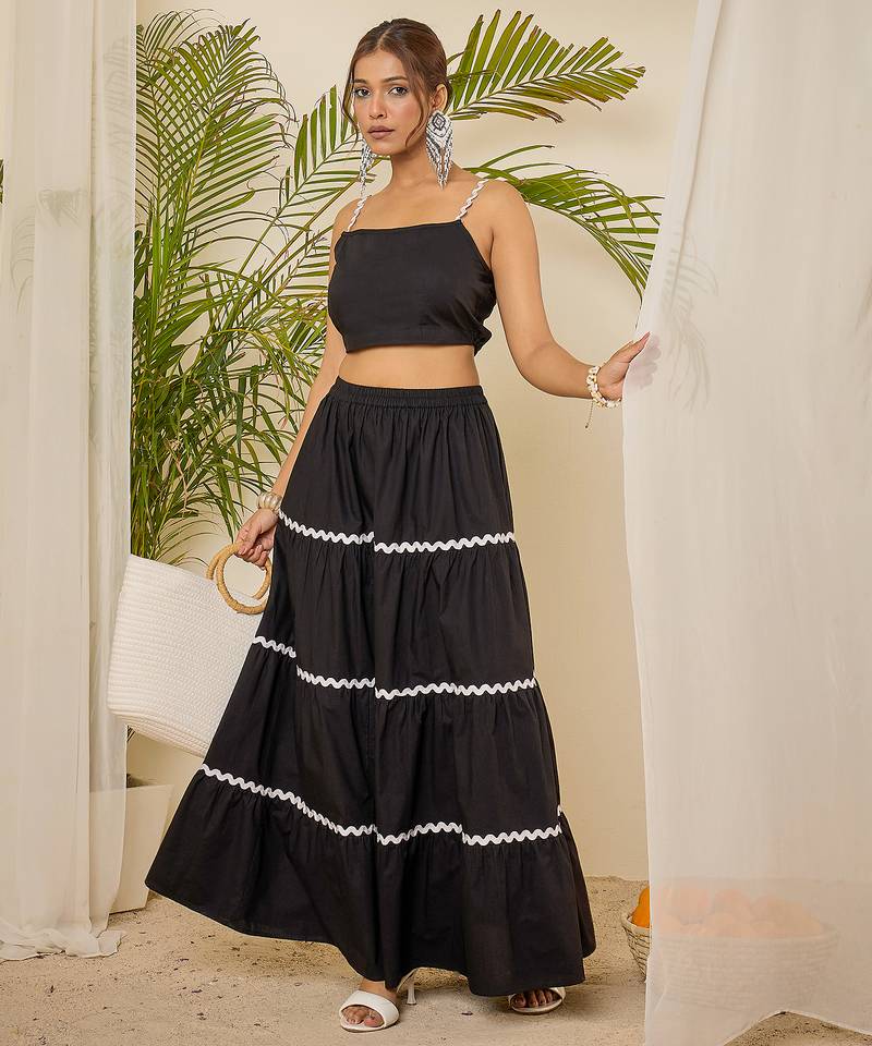 | Product Description | Cotton Lace Detailing Crop Top With Maxi Tiered Skirt Co Ord Set |