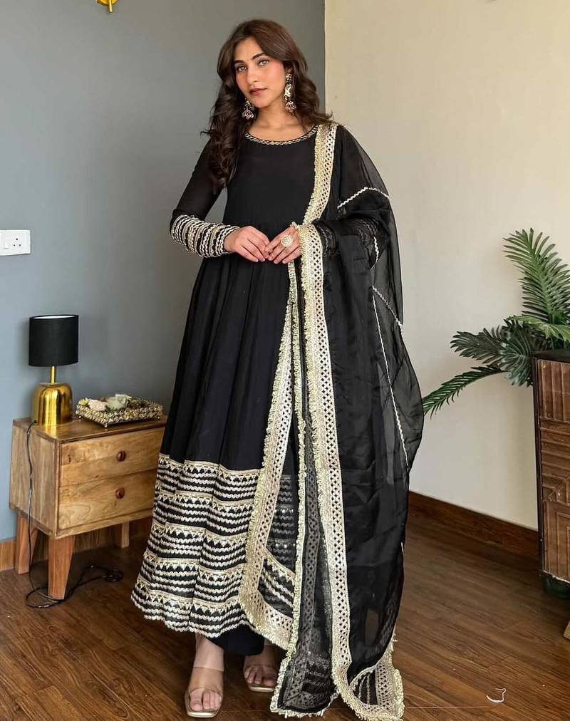| Product Name | Black Rayon Party Wear Embroidery Anarkali Suit Set | |