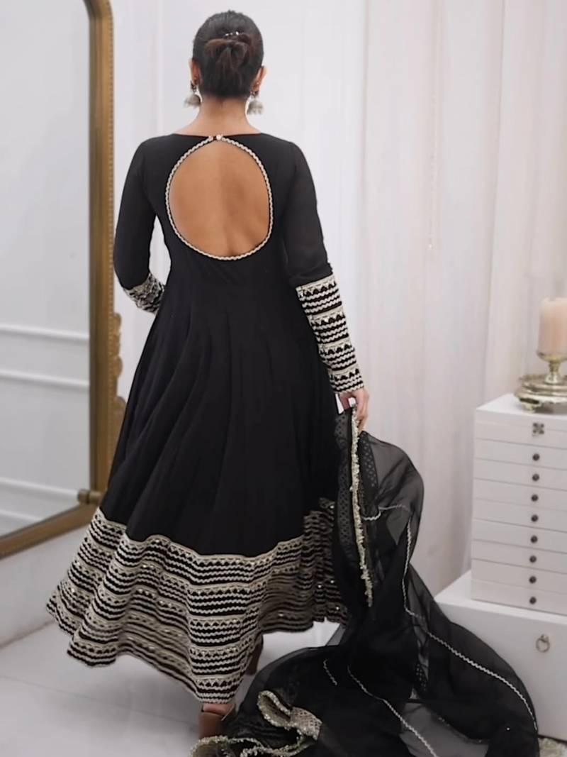 Black rayon party wear embroidery anarkali suit set stitched