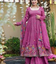 Dusty rose embroidered crunchy silk party wear sharara set stitched