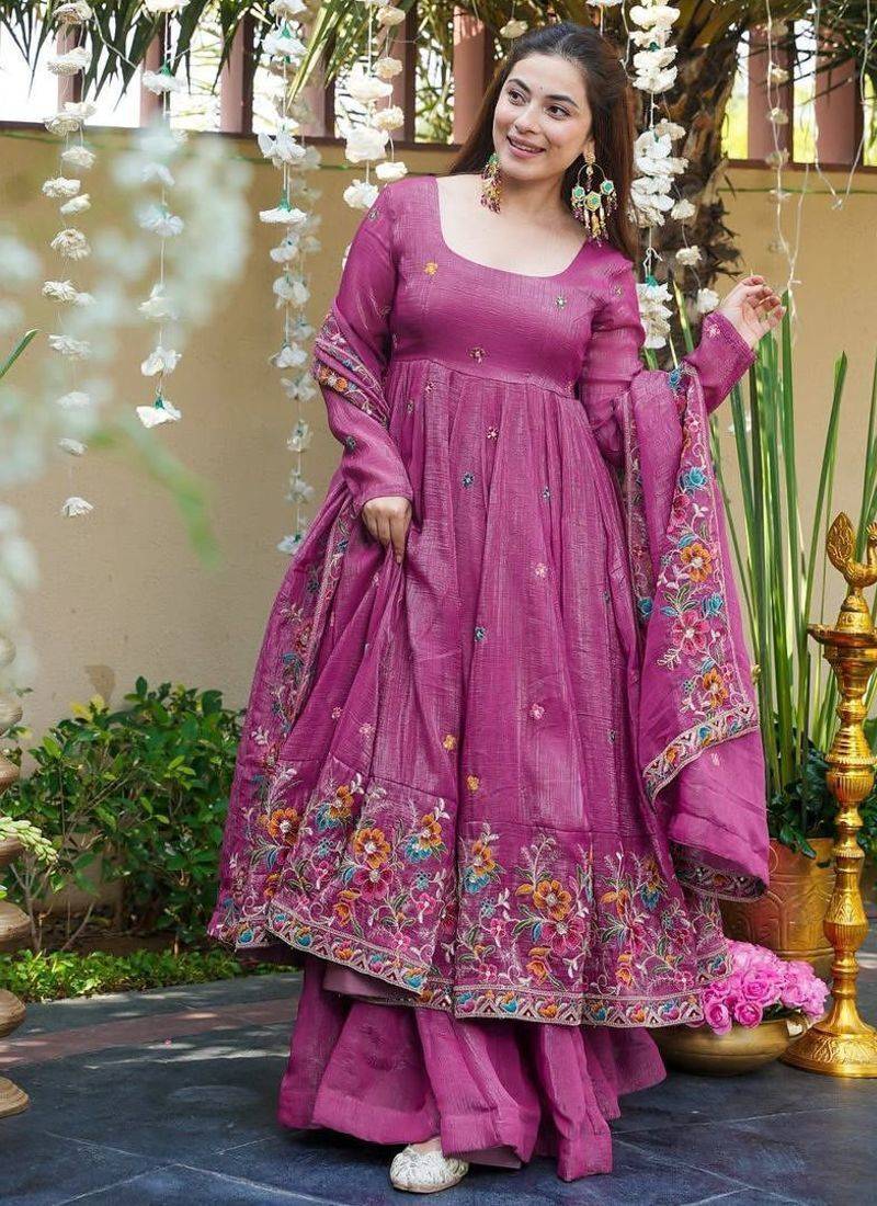 | Product Description | Dusty Rose Sharara Suit Set Crafted From Crunchy Silk Fabric That Gives A Rich Texture And Graceful Fall. The Kurta Features Beautiful Embroidery Work, Especially Along The Hemline And Borders, Adding A Festive And Traditional Touch To The Outfit. The Dusty Rose Color Gives A Soft And Elegant Appearance. The Set Includes A Matching Sharara Bottom And A Coordinated Dupatta That Completes The Overall Look Perfectly. Comfortable To Wear And Stylish In Appearance, Dusty Rose Crunchy Silk Party Wear Embroidery Sharara Suit Set Is A Great Choice For Festive Celebrations, Family Functions, And Special Occasions. |