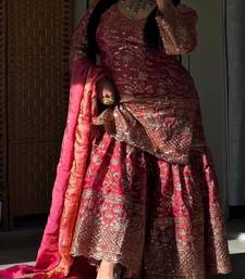 | Product Name | Orange Fandy Crushi Silk Party Wear Embroidery Sharara Suit Set | |