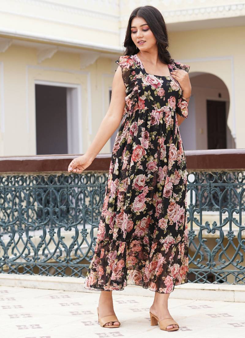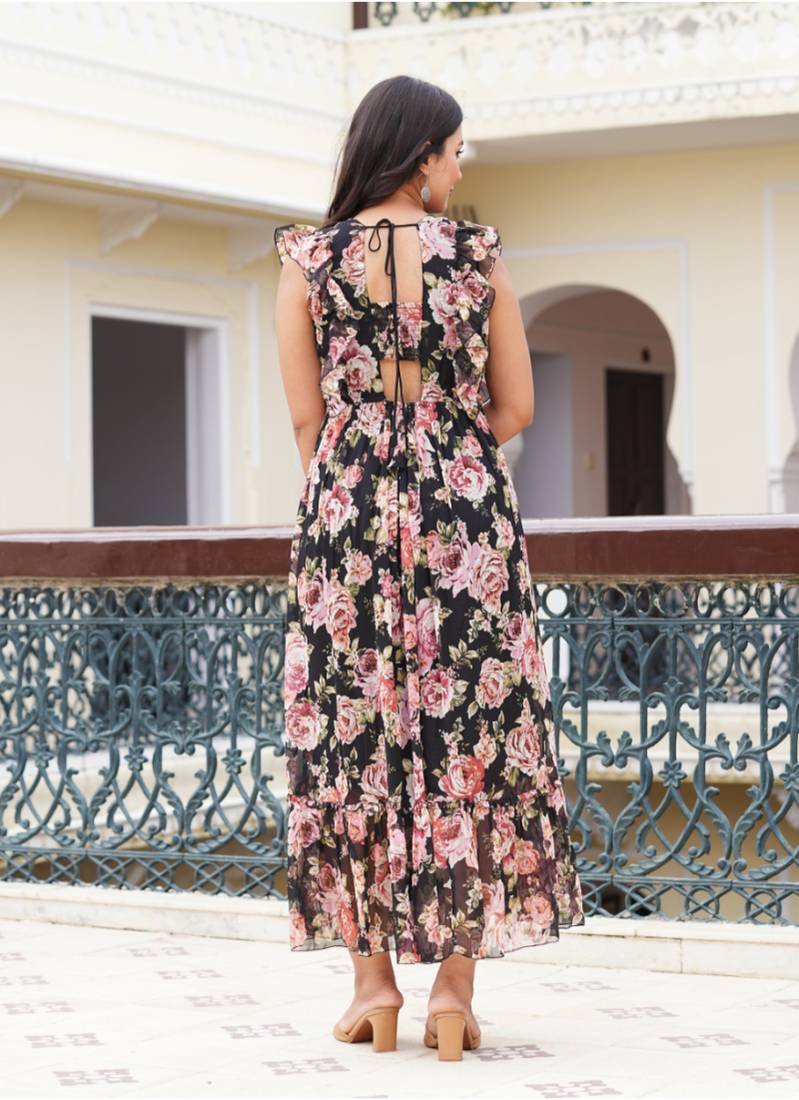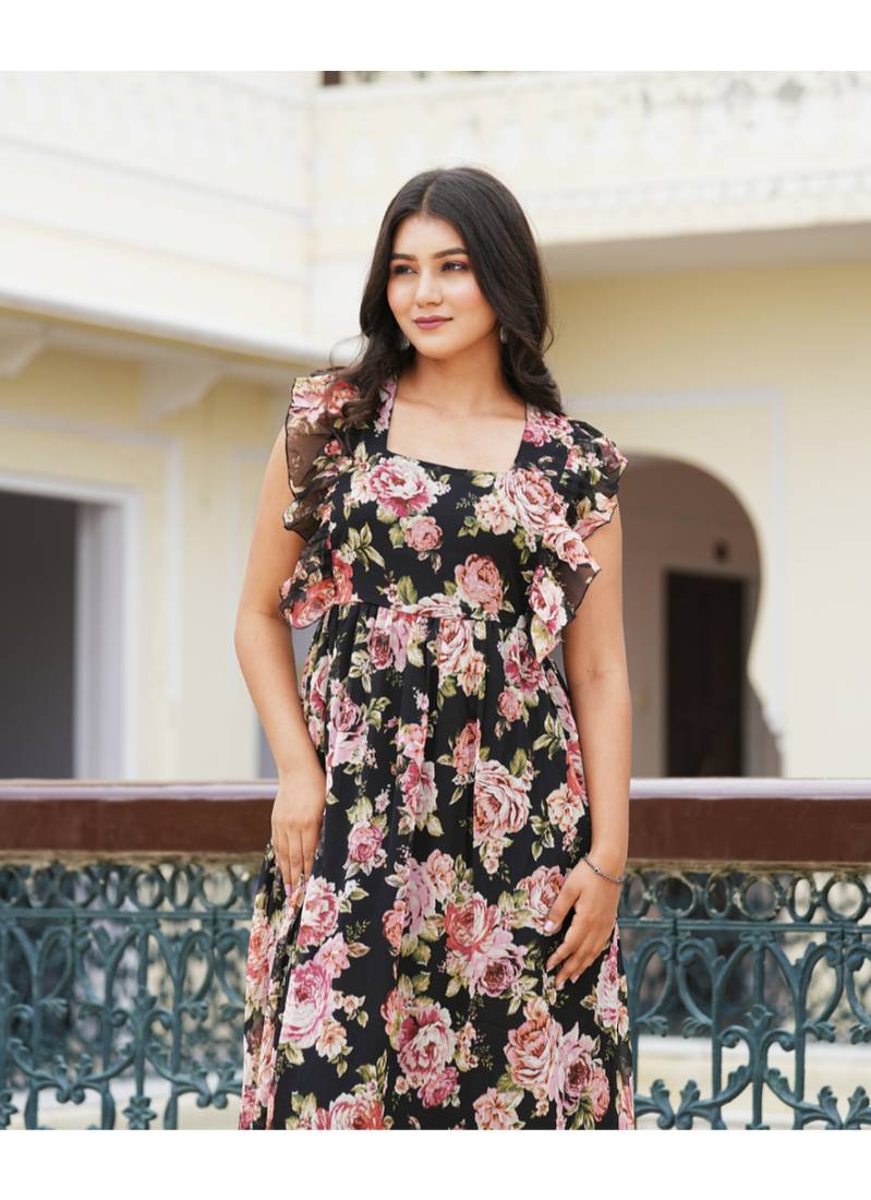 | Product Name | Yash Gallery Women's Chiffon Floral Printed Maxi Length Square Neck Sleeveless Summer Dress (Black) | |
