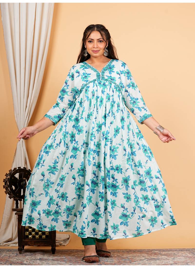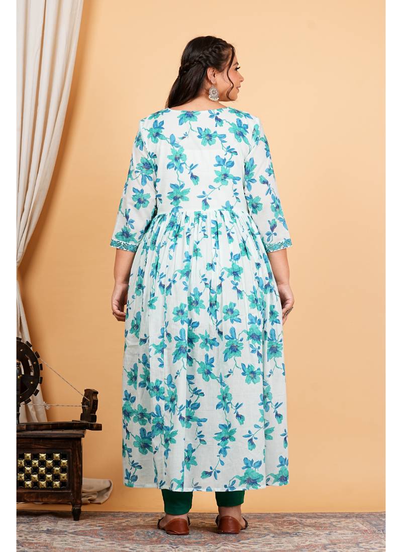 Elevate Your Wardrobe With The Enchanting Yash Gallery Women's Cotton Floral Printed Anarkali Kurta, Designed To Embody Elegance And Comfort. Crafted From High Quality Cotton, This Stunning Piece Features Intricate Floral Prints In A Captivating Blue Hue. The 3/4th Sleeves And V Neck Design Provide A Flattering Silhouette, Making It Suitable For Various Occasions, From Family Gatherings To Festive Celebrations. This Kurta Also Comes With A Beautifully Coordinated Dupatta, Enhancing Your Traditional Look With An Extra Touch Of Grace. What Sets This Anarkali Kurta Apart Is Its Exquisite Embroidered Detailing, Showcasing The Artistry And Craftsmanship That Goes Into Each Piece. The Breathable Fabric Ensures All Day Comfort, While The Vibrant Floral Print Adds A Refreshing Charm To Your Outfit. Available In Various Sizes, This Kurta Is Designed To Fit Beautifully On All Body Types. Pair It With Your Favorite Ethnic Jewelry And Stylish Footwear To Complete A Striking Ensemble That Reflects Your Unique Style. Caring For Your New Favorite Kurta Is Simple—Just Machine Wash It In Cold Water And Hang It To Dry, Ensuring That It Maintains Its Vibrant Colors And Intricate Embroidery For Years To Come. With Its Handcrafted Quality And Attention To Detail, This Anarkali Kurta Is Not Just A Garment; It’s A Piece Of Art That Will Bring Joy To Your Wardrobe.