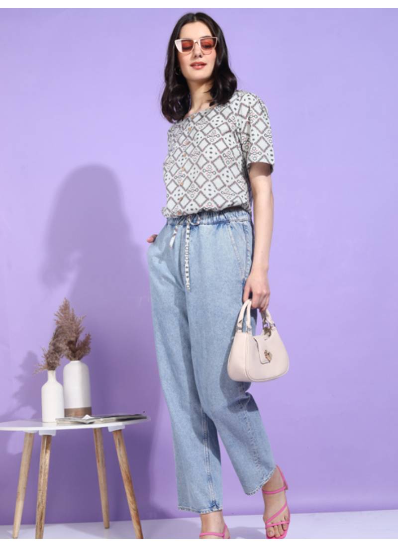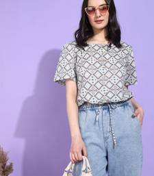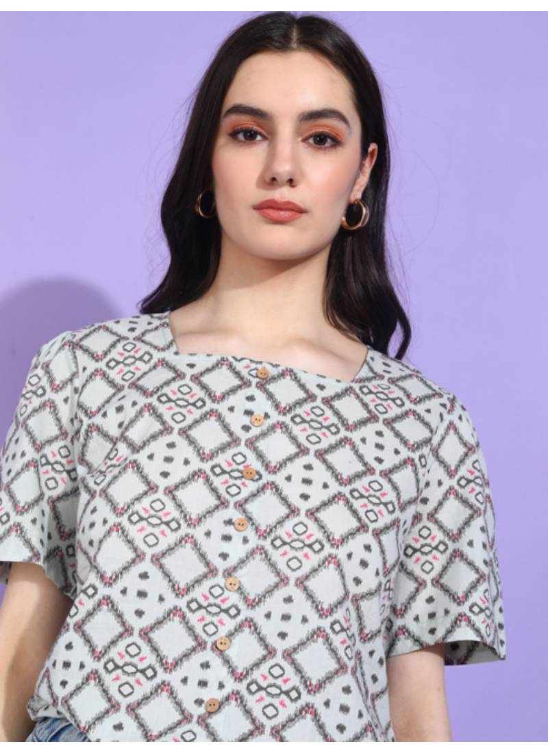 Embrace Effortless Style With This Women's Cotton Geometrical Print Waist Length Top. This Chic Piece Features A Stunning Geometrical Print That Adds A Modern Twist To Your Everyday Wardrobe. Crafted From High Quality, Breathable Cotton, This Top Ensures All Day Comfort Whether You’re Out With Friends Or Relaxing At Home. The Regular Fitted Design Perfectly Accentuates Your Silhouette, While The Square Neck And Short Sleeves Offer A Fresh Look That Is As Versatile As It Is Fashionable. Available In A Range Of Sizes, This Top Fits Beautifully And Is Ideal For Layering Or Wearing On Its Own. The Waist Length Cut Provides A Flattering Fit That Pairs Wonderfully With High Waisted Jeans, Skirts, Or Shorts. It's Not Just A Top; It's An Indispensable Staple That You Can Wear For Casual Outings, Brunch Dates, Or Even Office Wear. Dress It Up With Accessories Or Keep It Casual—Either Way, You’re Guaranteed To Turn Heads! Caring For Top Is A Breeze. Simply Machine Wash In Cold Water And Tumble Dry On Low For Best Results. Our Commitment To Handcrafted Quality Ensures That Each Piece Is Made With Care And Attention To Detail. Elevate Your Wardrobe With This Stylish Geometrical Print Top And Enjoy A Blend Of Comfort, Style, And Individuality That Makes You Feel Great Every Time You Wear It!.