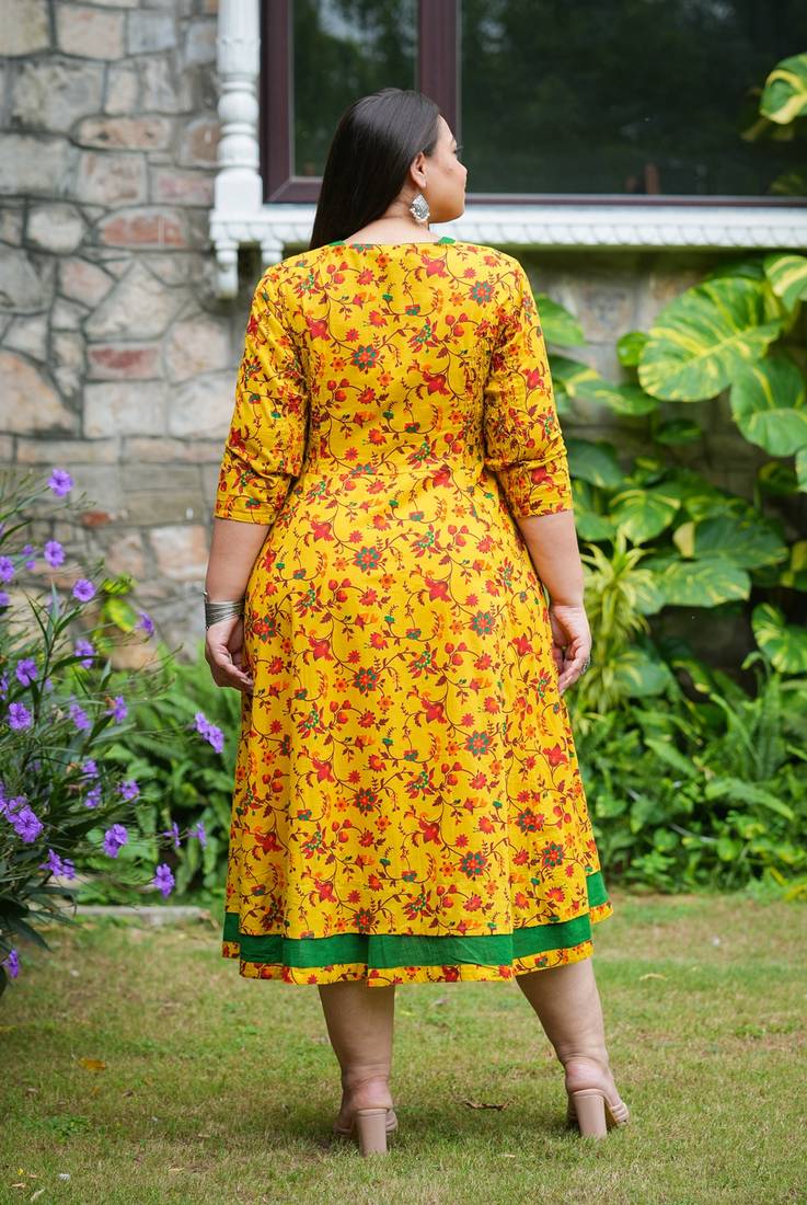 Yash gallery women's stretchable maternity wear floral printed anarkali dress (mustard)