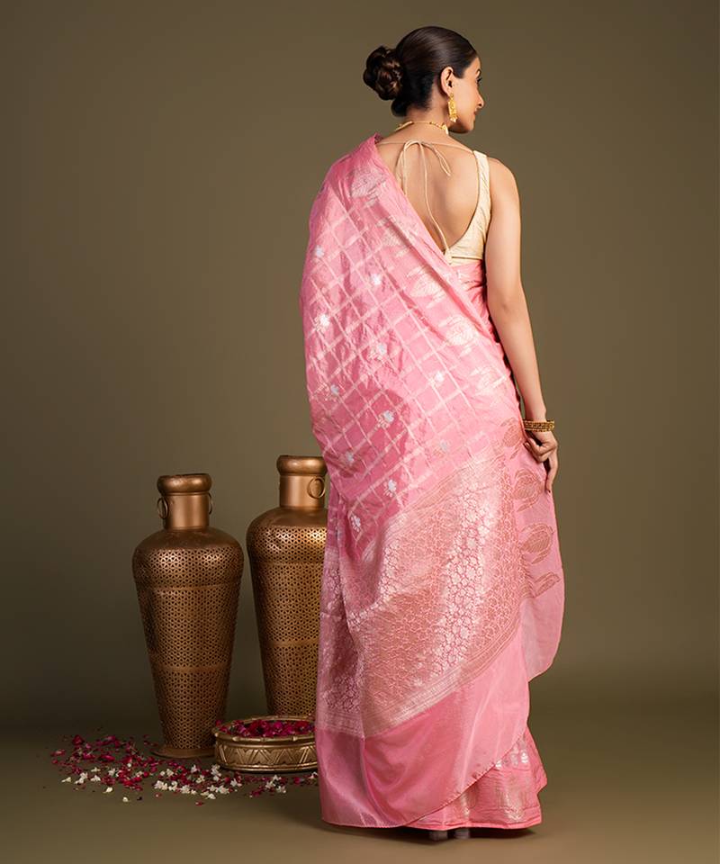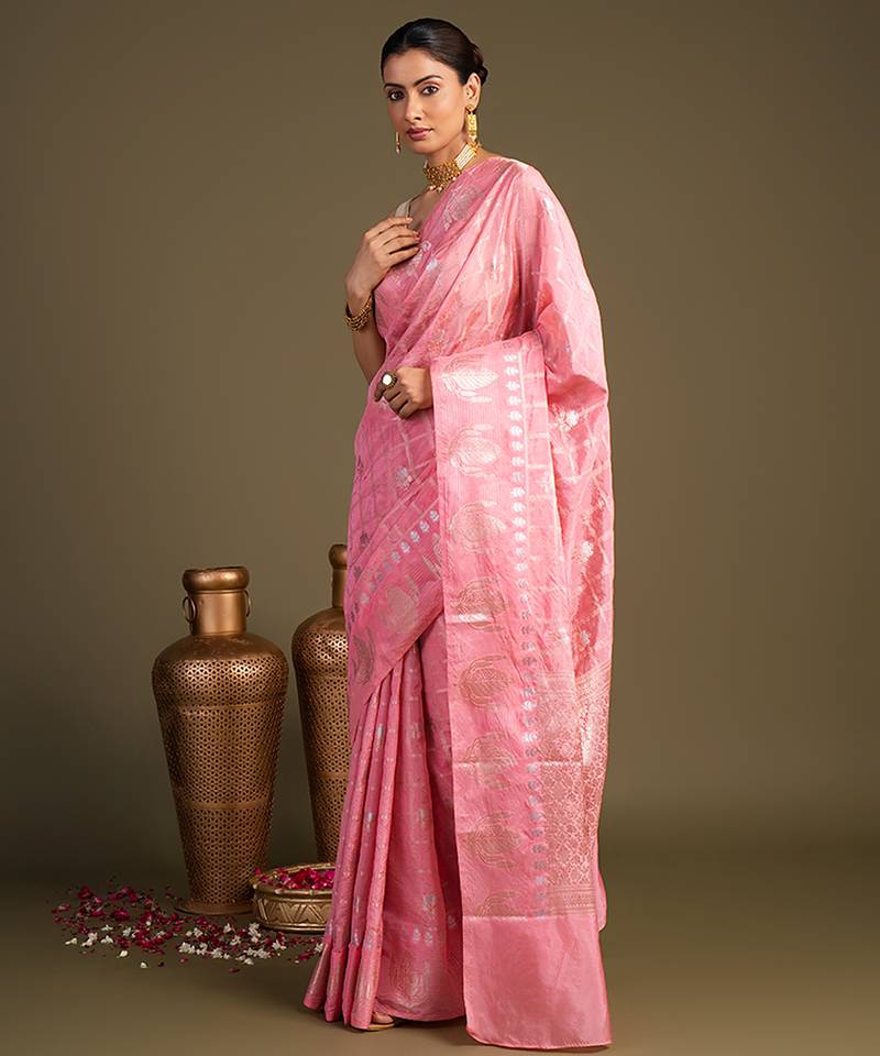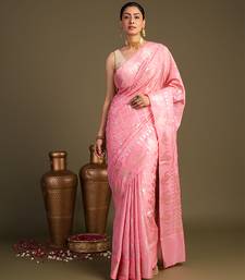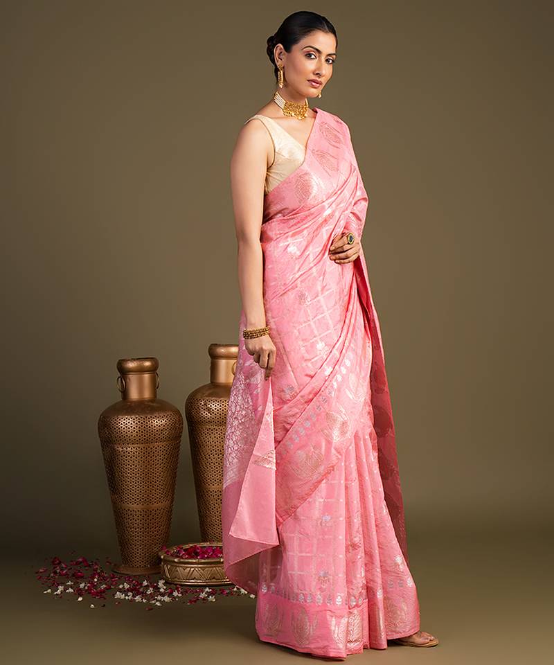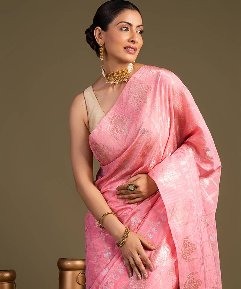 Baby pink handloom pure silk saree