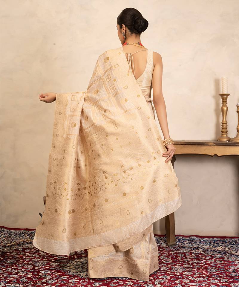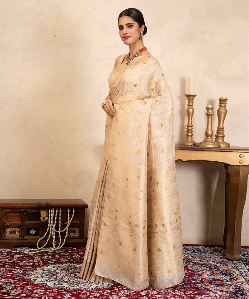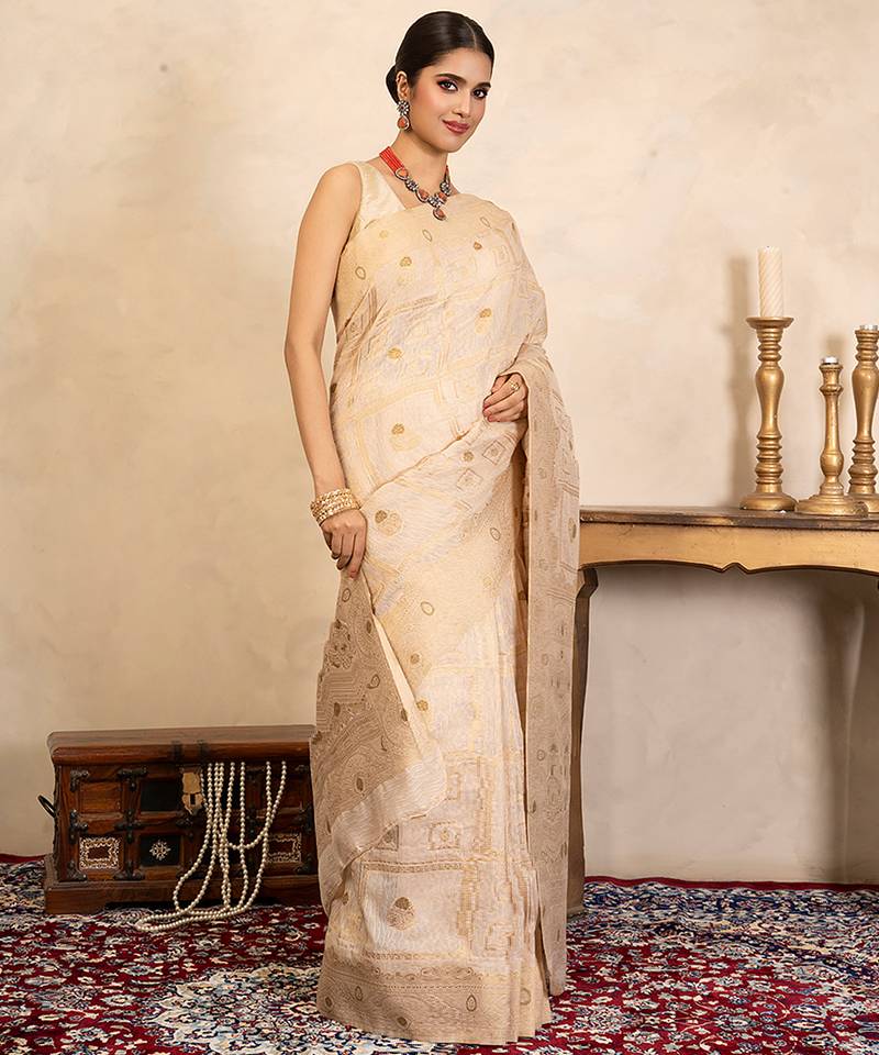 Beige handloom pure silk saree