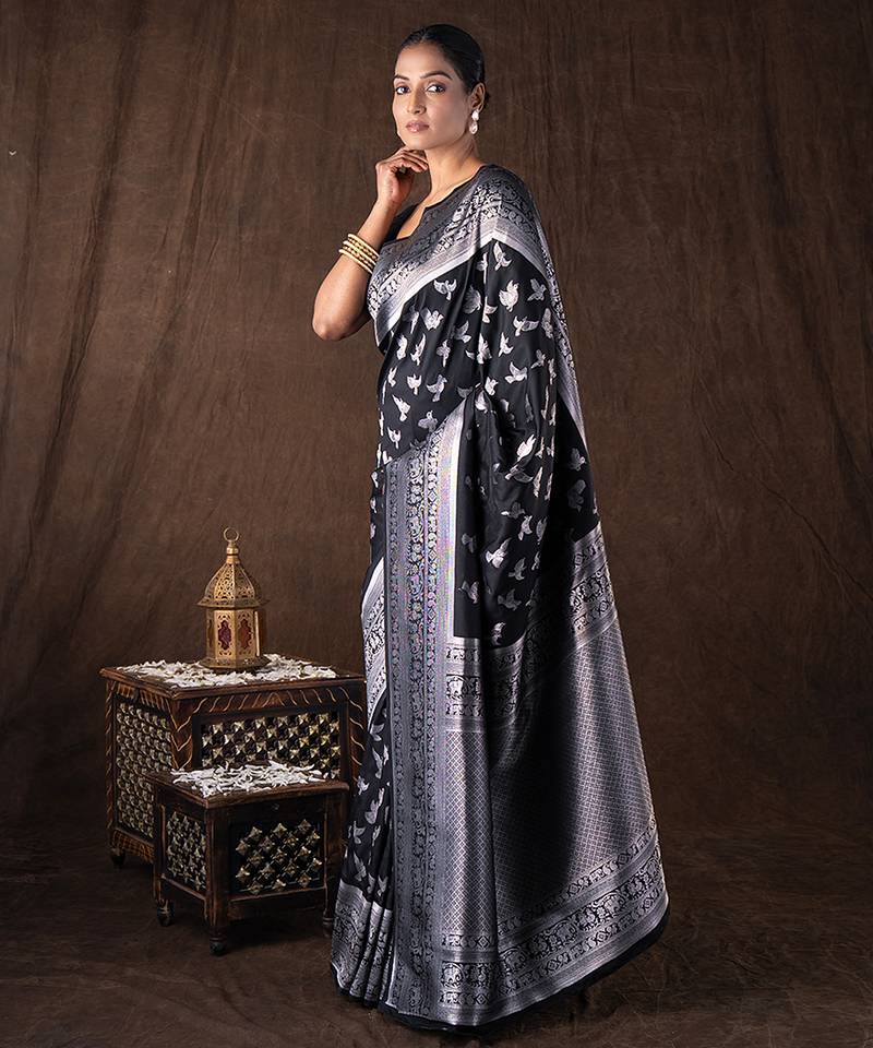 | Product Description | This Black Pure Silk Saree Exudes Understated Elegance With Its Rich Texture And Graceful Drape. Crafted Using Traditional Handloom Techniques, It Is Perfect For Formal And Festive Occasions. Pair It With Bold Jewelry To Create A Striking, Sophisticated Look That Remains Timeless And Effortlessly Stylish.
