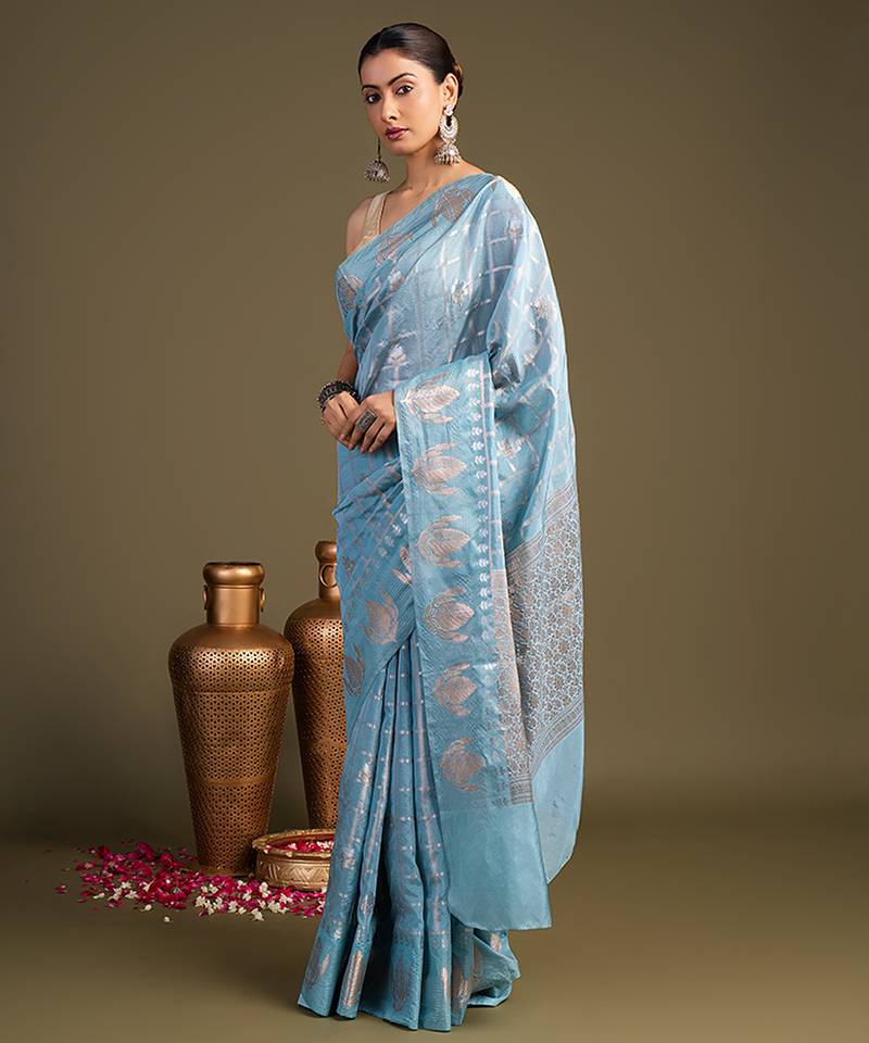 | • | Saree | : | Color- Blue / Fabric- Pure Silk |