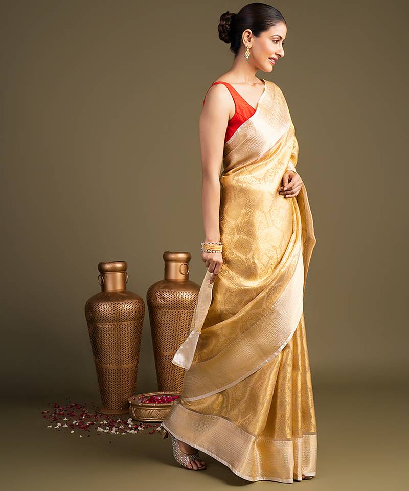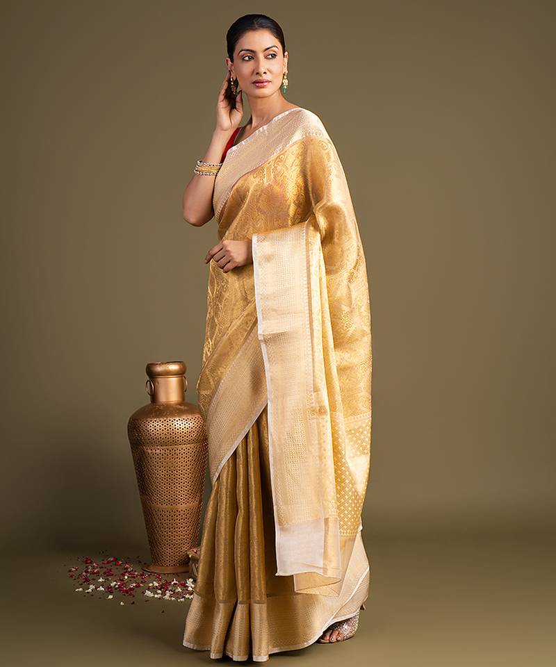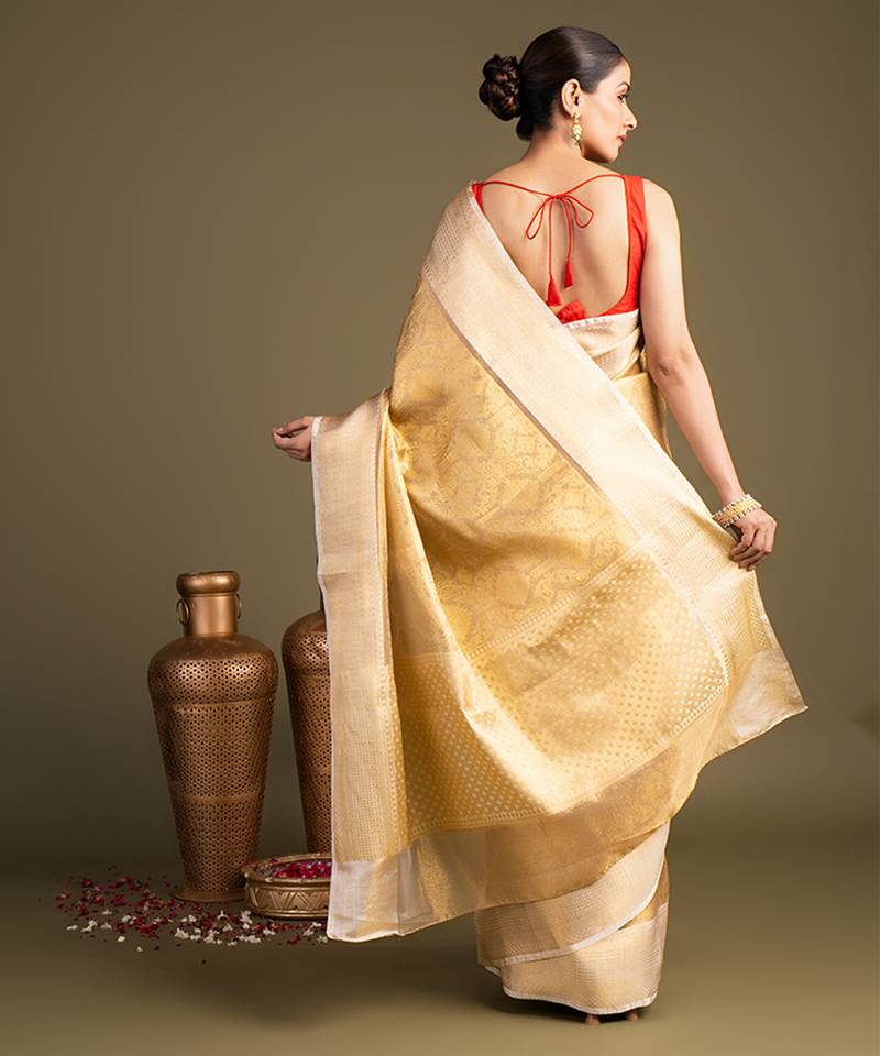 Gold handloom banarasi silk saree