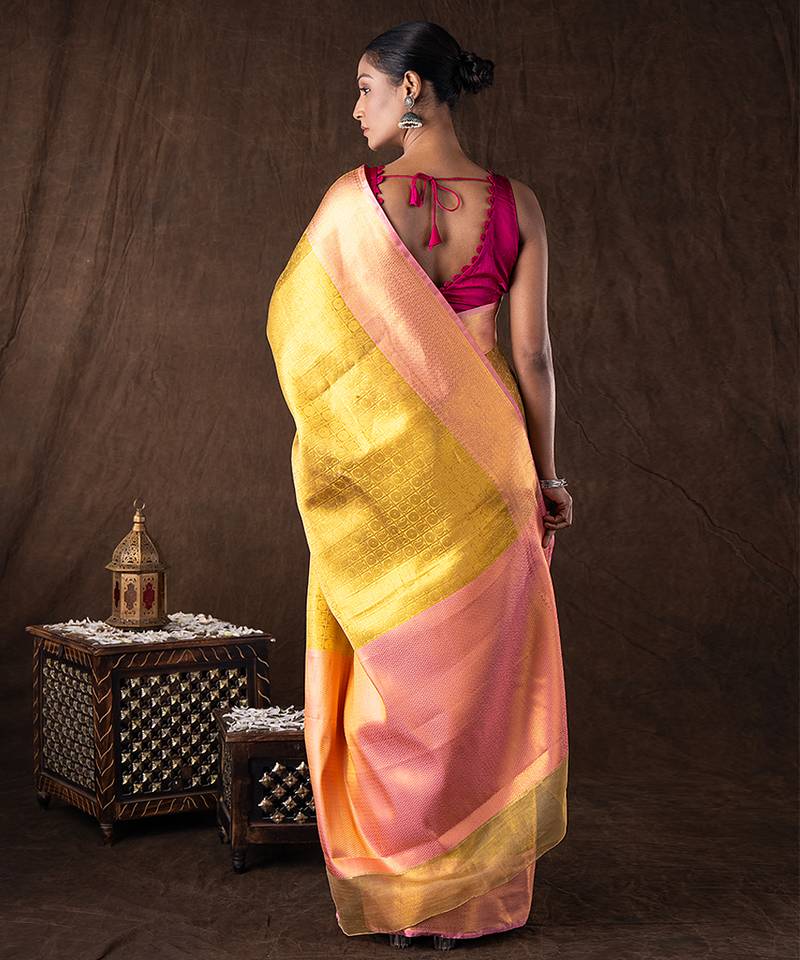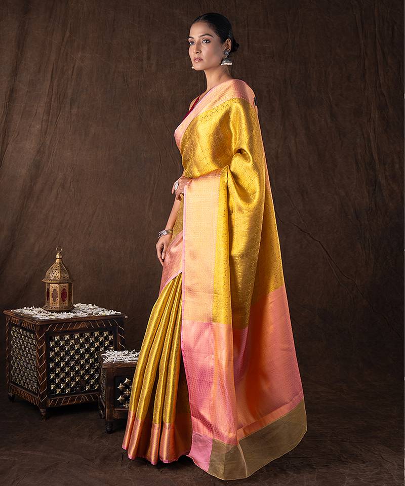 Golden handloom banarasi silk saree
