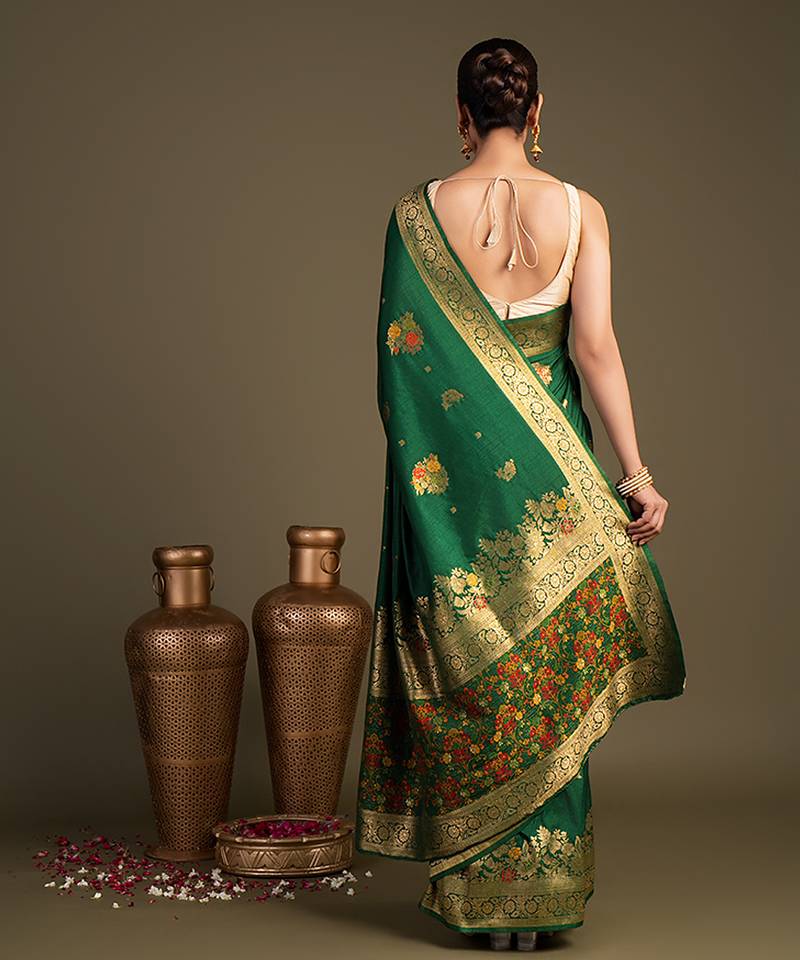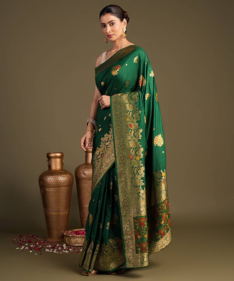 | Product Description | This Green Pure Silk Saree Is Crafted With Fine Handloom Techniques, Offering A Rich Texture And Elegant Drape. Its Vibrant Color Makes It Ideal For Festive Occasions. Pair It With Traditional Accessories To Create A Graceful And Timeless Ensemble That Reflects Sophistication And Cultural Elegance.