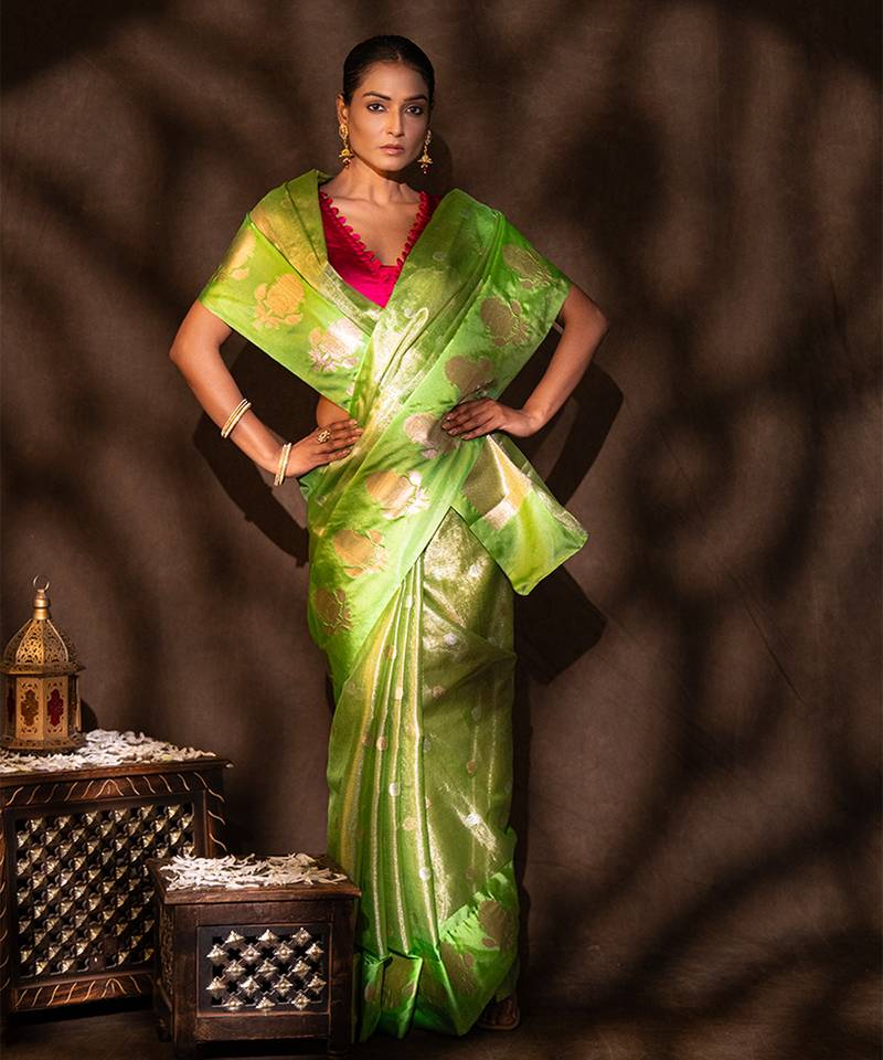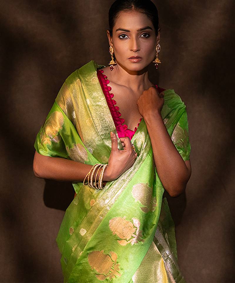 | Product Description | This Green Tissue Silk Saree Features A Subtle Shimmer And Lightweight Feel, Crafted With Fine Handloom Artistry. Its Elegant Drape And Luminous Finish Make It Perfect For Festive Occasions. Style It With Statement Accessories To Create A Vibrant And Graceful Look With Contemporary Charm.