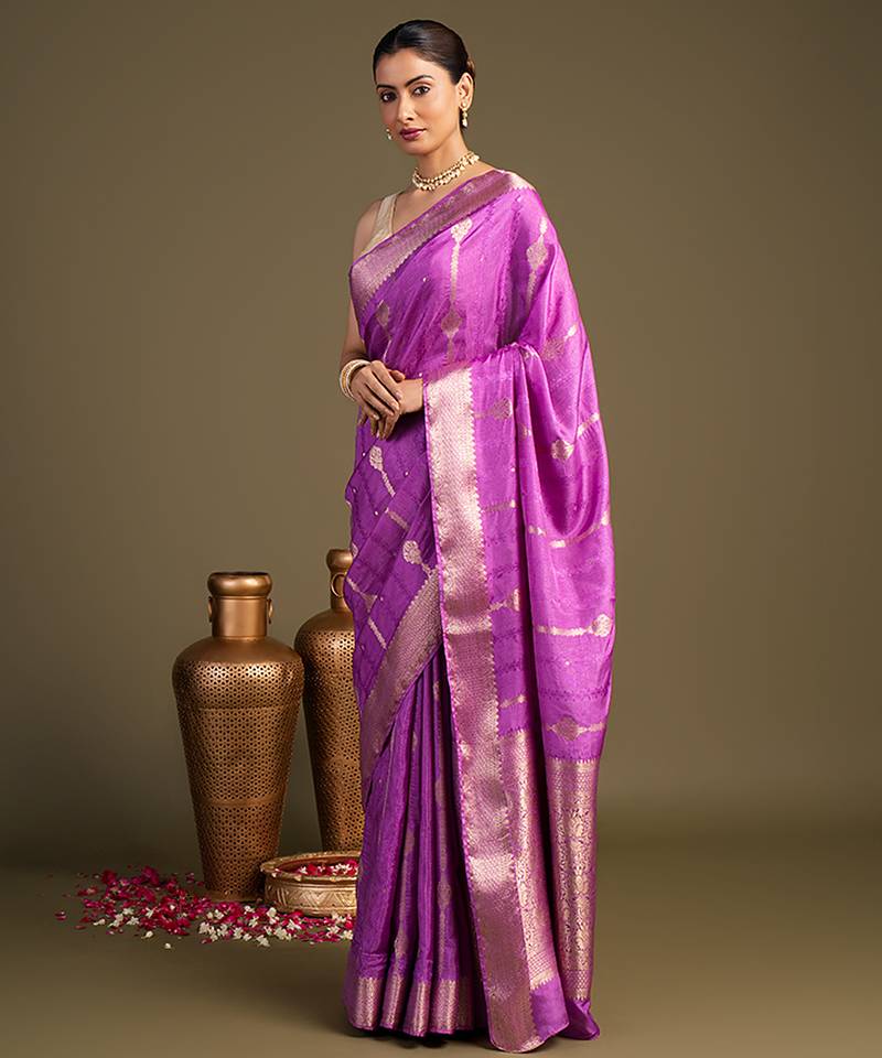 | Product Description | This Lavender Pure Silk Saree Features A Soft, Soothing Hue And A Smooth, Luxurious Texture. Crafted With Handloom Precision, It Drapes Elegantly, Making It Ideal For Festive Or Special Occasions. Pair It With Minimal Jewelry For A Refined, Graceful Look With A Modern Touch.