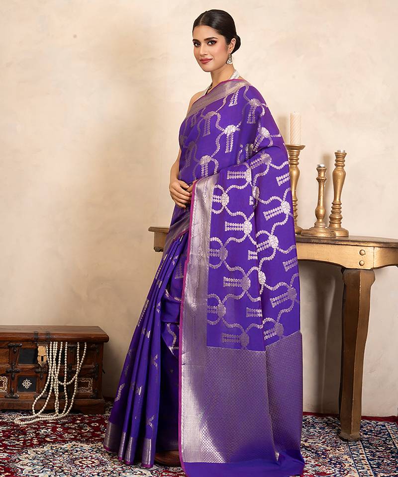 | Product Description | This Purple Pure Silk Saree Features A Rich Texture And Graceful Drape, Crafted With Traditional Handloom Artistry. Its Regal Hue Adds Elegance, Making It Ideal For Festive Occasions. Pair It With Statement Jewelry To Create A Refined And Timeless Look That Blends Heritage Charm With Modern Sophistication.