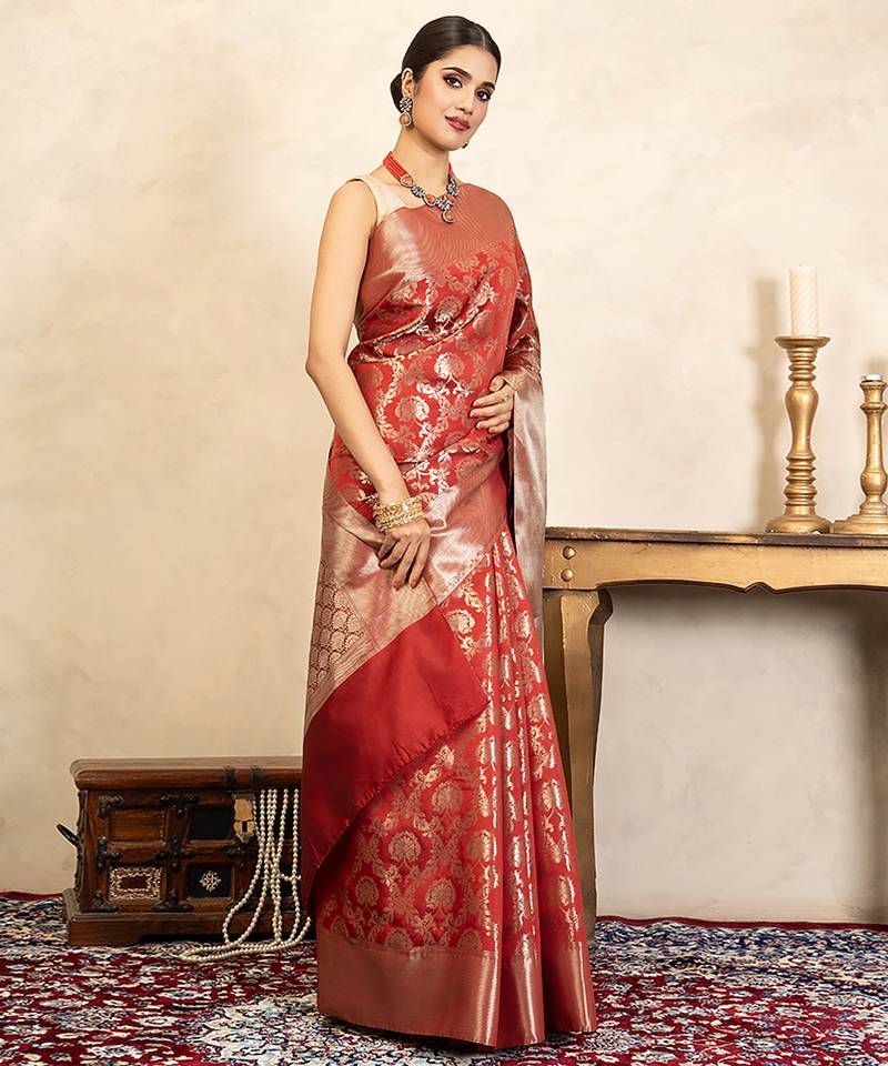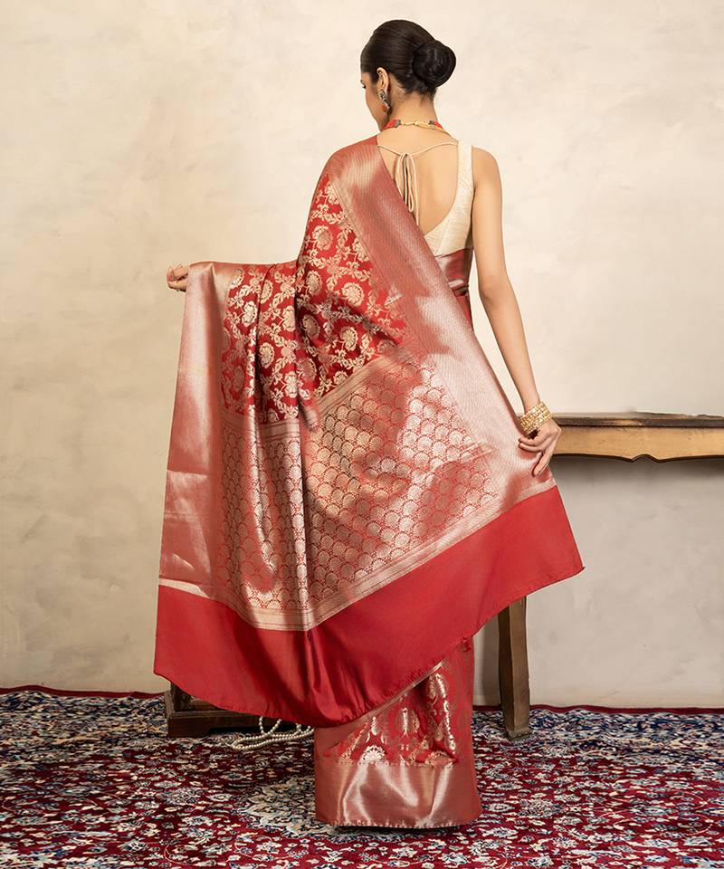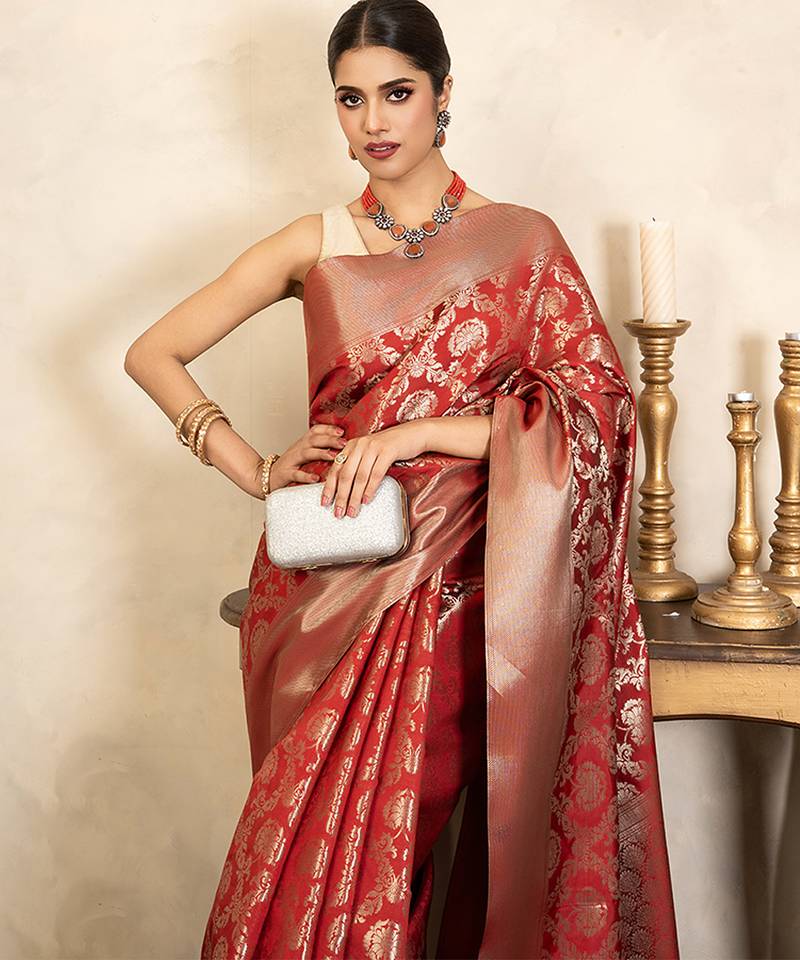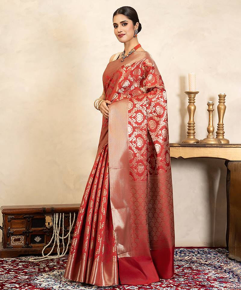| Product Description | This Red Pure Silk Saree Is Crafted With Fine Handloom Techniques, Offering A Rich Texture And Elegant Drape. Its Vibrant Color Makes It Perfect For Weddings And Festive Occasions. Pair It With Traditional Jewelry To Create A Timeless, Graceful Look Full Of Sophistication.