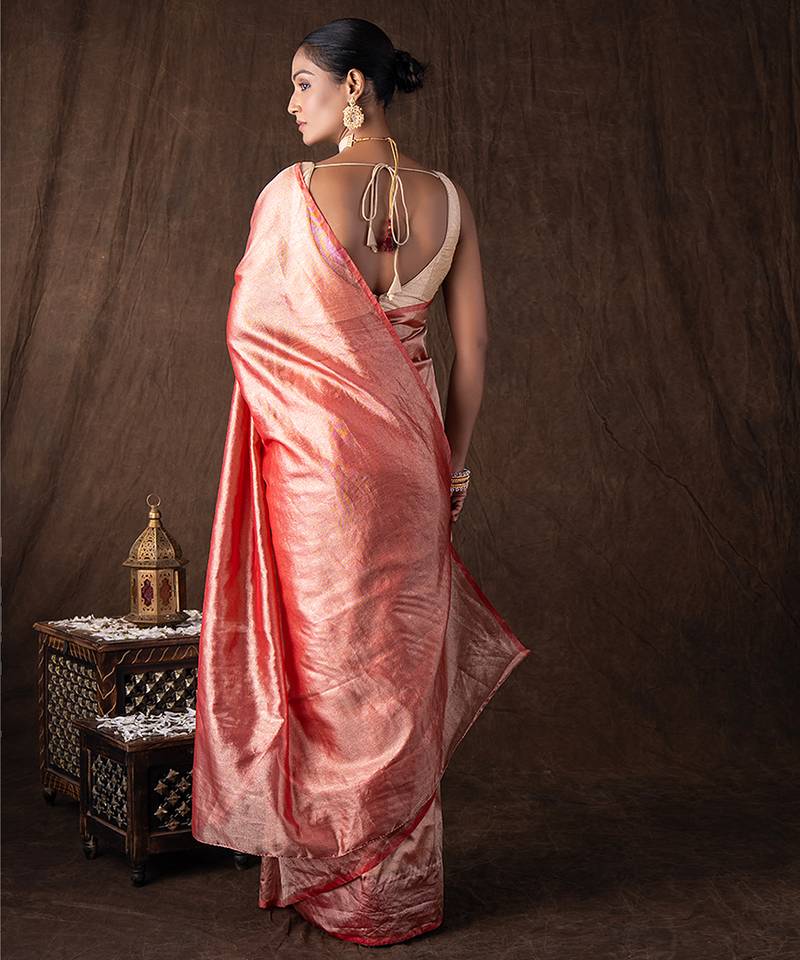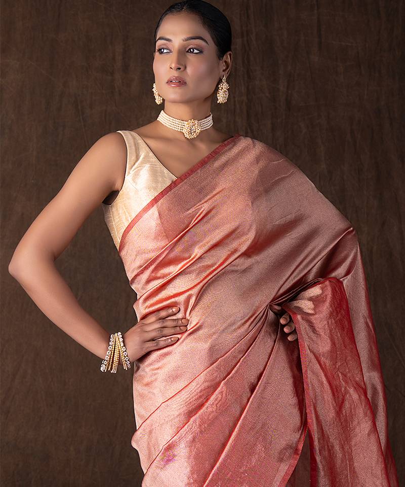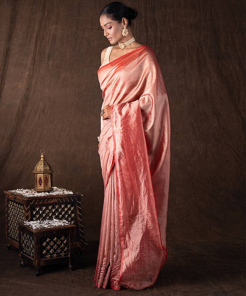 | Product Description | This Red Pure Tissue Saree Showcases A Luminous Finish With Fine Handloom Craftsmanship. Lightweight Yet Rich In Appeal, It Drapes Elegantly For Festive And Wedding Occasions. Pair It With Statement Jewelry To Highlight Its Radiant Charm And Create A Striking, Graceful Ensemble With Contemporary Sophistication.