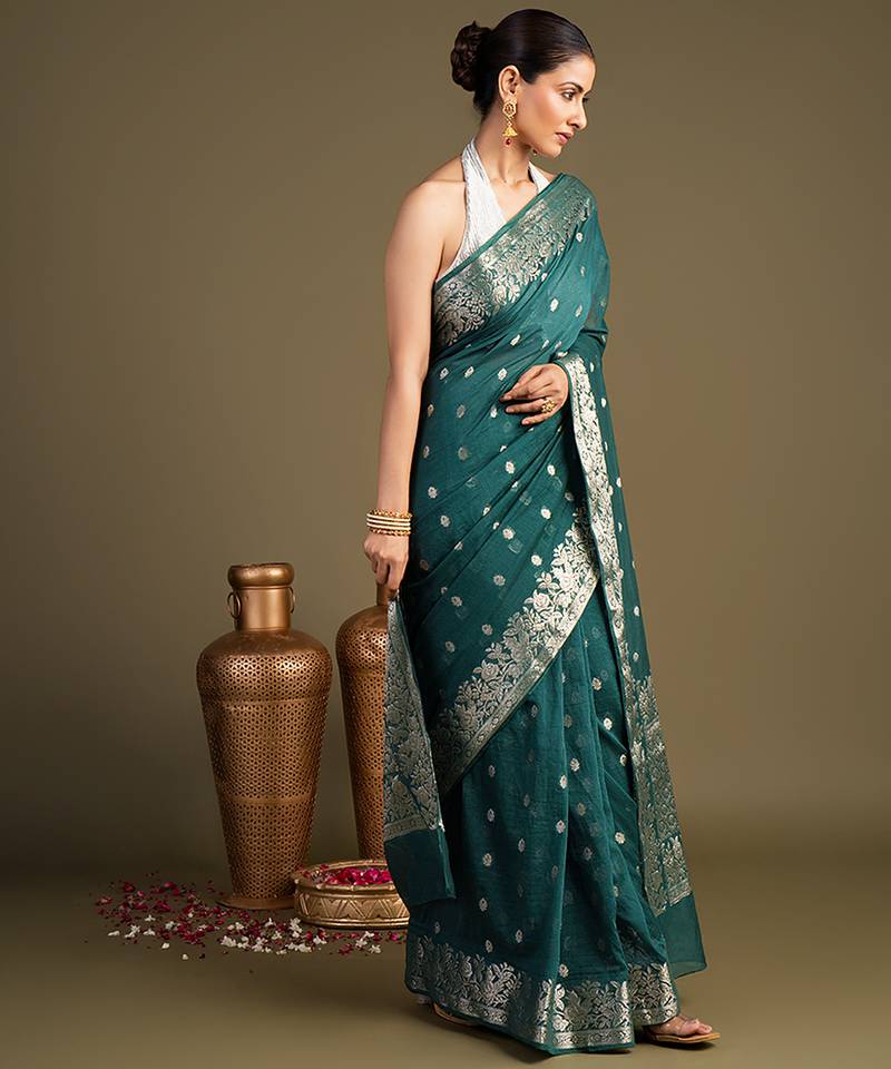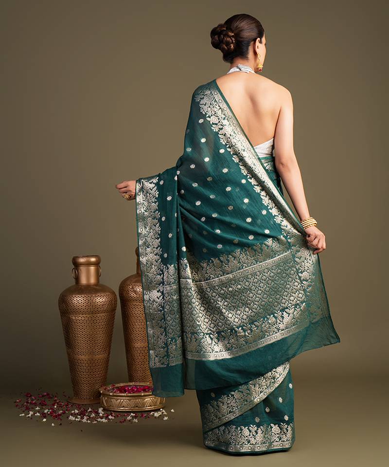 | Product Description | This Teal Blue Pure Silk Saree Features A Rich Texture And Fluid Drape, Crafted Using Traditional Handloom Techniques. Its Unique Hue Adds Depth And Elegance, Making It Perfect For Festive Occasions. Pair It With Statement Jewelry For A Bold Yet Refined Look.